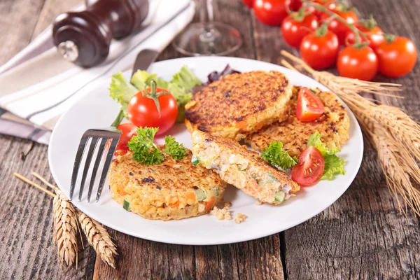 Panaskan oven hingga 200°C. Potong zucchini, paprika, dan wortel menjadi potongan kecil. Campur sayuran dengan minyak zaitun, herba kering, garam, dan merica. Letakkan sayuran di atas loyang, panggang selama 20–25